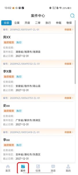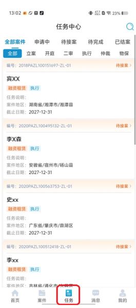 第三步:任务管理,全部的案件信息管理。