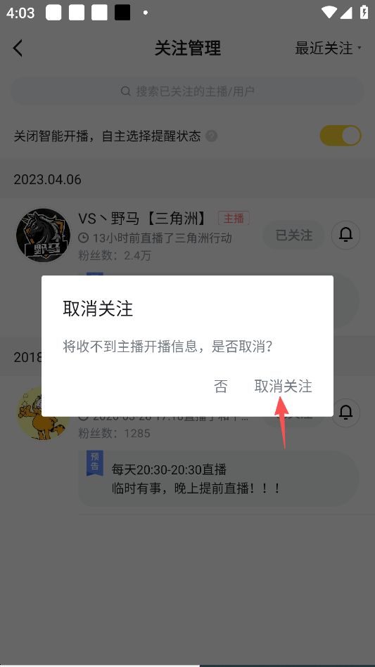 虎牙直播平台app怎么取关主播