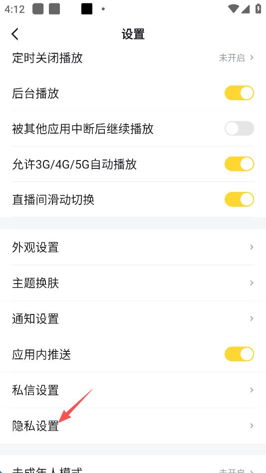 4、点击屏幕下方的“隐私设置”。