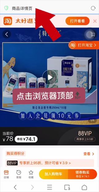 1、在浏览器网页上,进入淘宝商品页面,随后点击屏幕上方的“商品详细页”。
