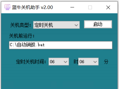 蓝牛关机助手是一款很实用的电脑关机软件,功能多操作也简单,一看就会断网自动关机:在软件里输入两个IP 软件检测这两个IP同时断开时软件自动关闭电脑。进程关闭自动关机:在软件里设置要检测的进程,当进程关闭时 软件自动关闭电脑。定时关机:软件可以在设置的指定时间后自动关闭电脑。延时关机:可以设置多少秒后软件自动关闭电脑。