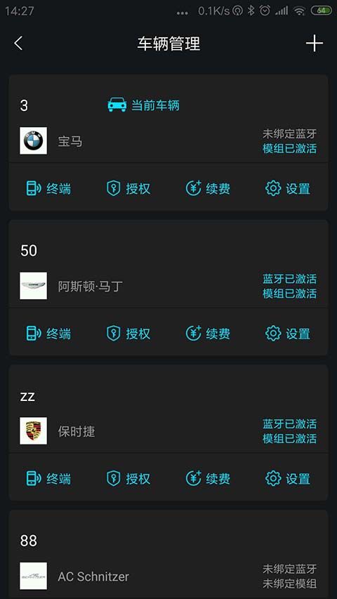 4、点击右上角+号,添加车辆信息。