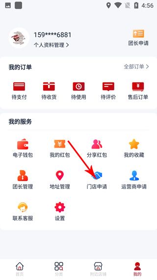 3、点击我的 服务中的门店申请;