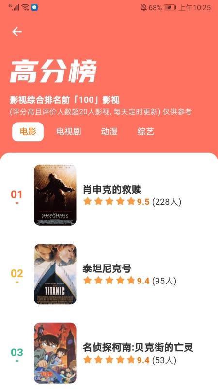 2、用户可根据兴趣选择相应的类别,这里以为高分榜单为例,选择相应的影视作品,