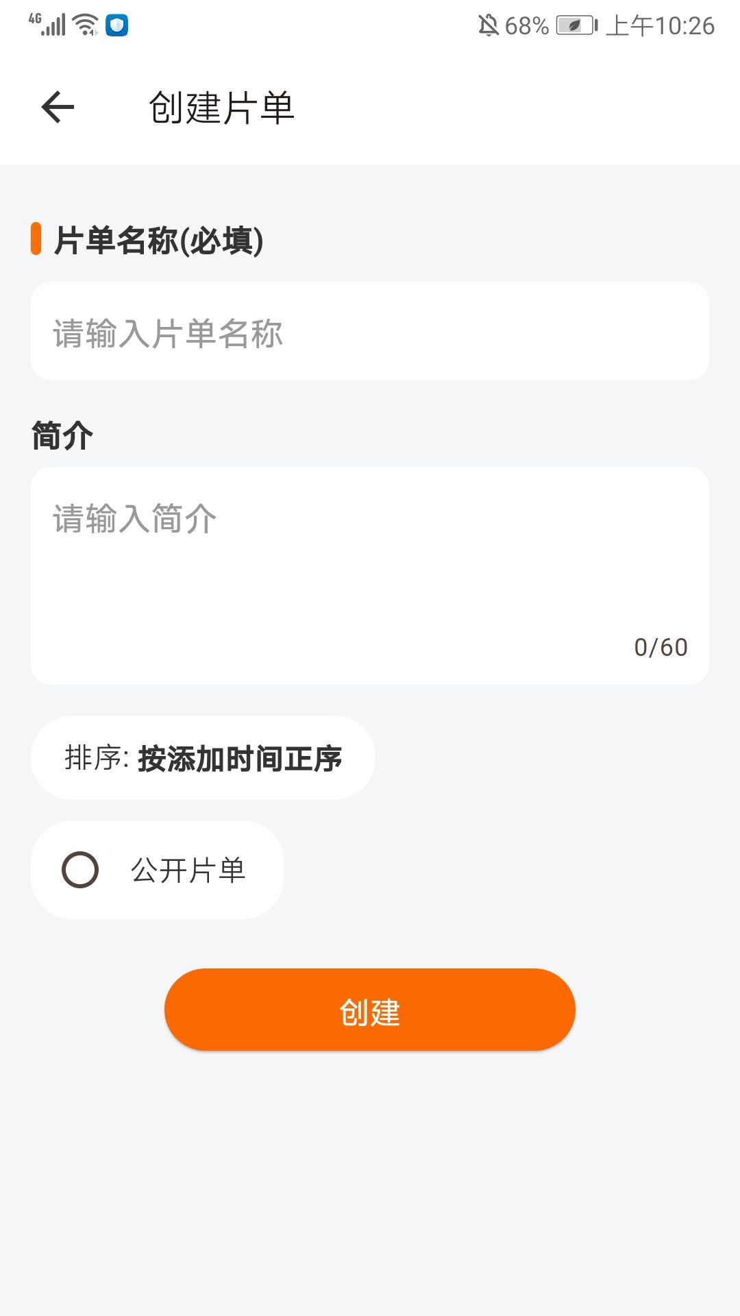 5、我们也可以创建属于自己的片单,输入片单名称和简介后就可以创建了,
