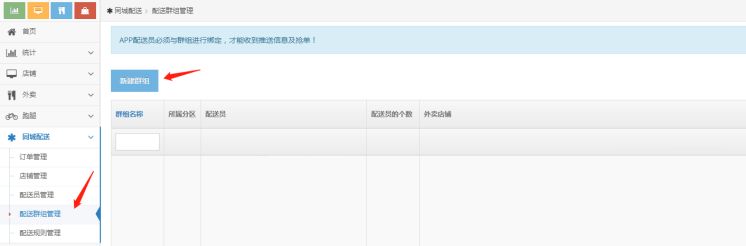 4、同时为配送员分配关联的店铺(可以是全部店铺或者某一个店铺),APP配送员必须与群组进行绑定,才能收到推送信息及抢单。