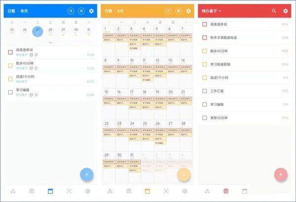 其中月视图支持左右滑动切换月份,你可以清楚的看到每个月的待办事项。