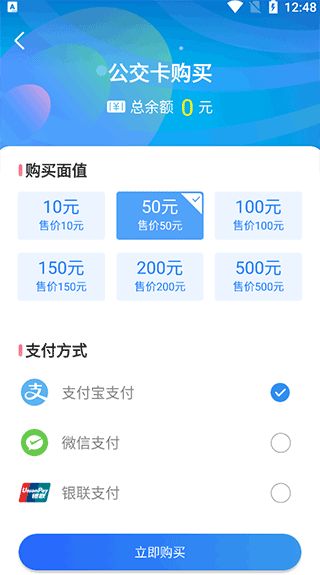 2、选择购买面值和支付方式,点击立即购买,即可完成充值。
