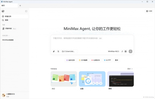 MiniMax agent(AI智能软件)V3.0.12 苹果电脑版 apple版/Intel版MiniMax桌面版提供了“专家Agent”功能,用户可创建财务分析、编程开发等垂直领域专家分身等,且还提供文档整理、数据分析到视频加速、网页自动化等全流程操作,欢迎下载...