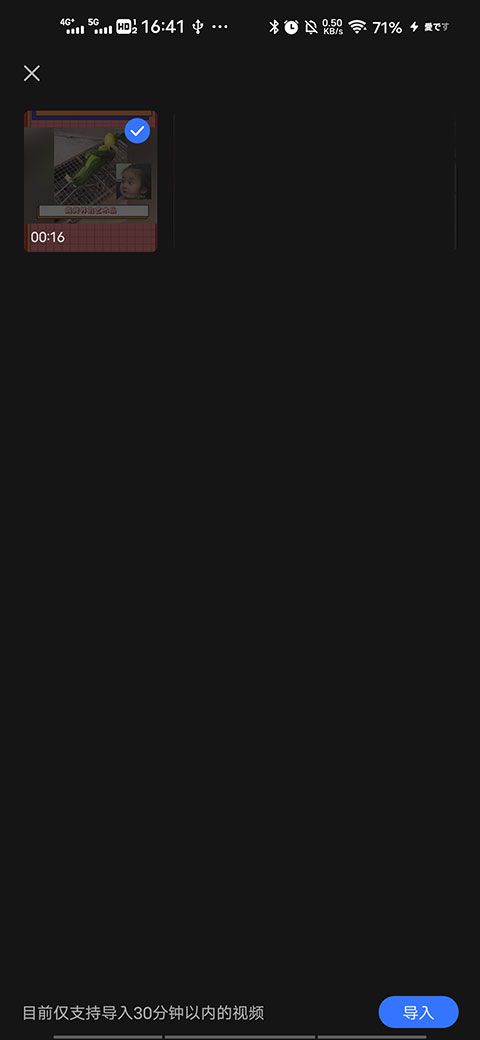 在作品页面,支持快速将手机相册内的某一视频导入至APP内,自定义视频编辑操作。