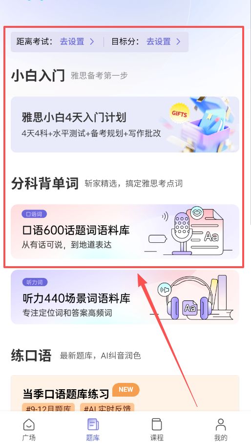 2、根据用户基础与目标分数,动态匹配学习内容与节奏。