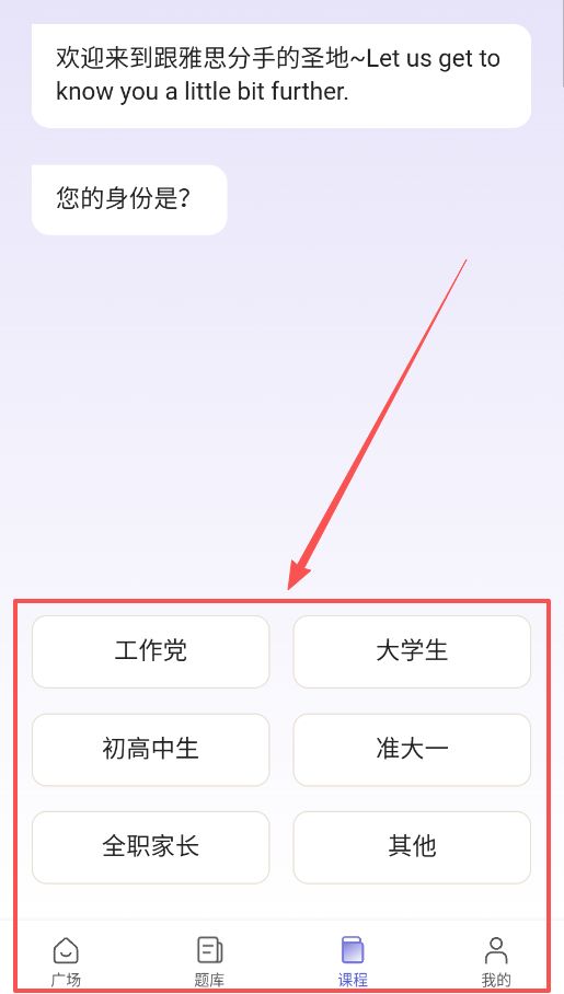 首先用户可以登录百词斩雅思app后进入课程界面中完成相关问答环节