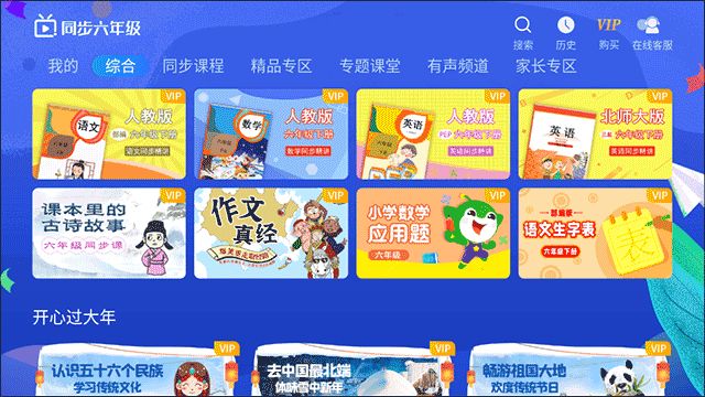 小学六年级同步课堂:语文、数学、英语、科学上下册跟教材完全同步的辅导课程。