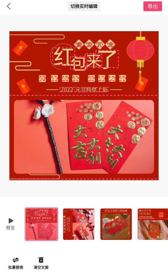 批量替换素材:一键替换图片或视频素材,简化剪辑流程。