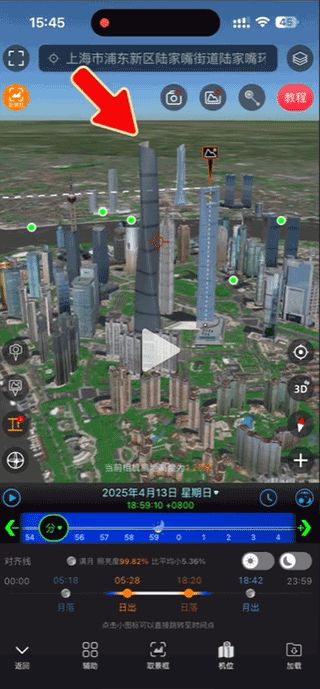 支持以3D立体视角模拟现实拍摄环境,包括城市景观、户外场景等,帮助用户直观规划拍摄画面。