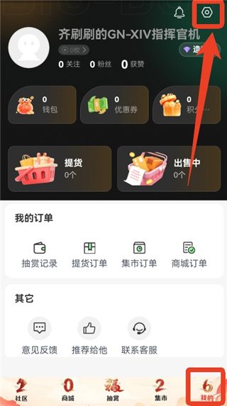 1、登录造物App之后,来到【我的】页面,点击右上角齿轮状的按钮。