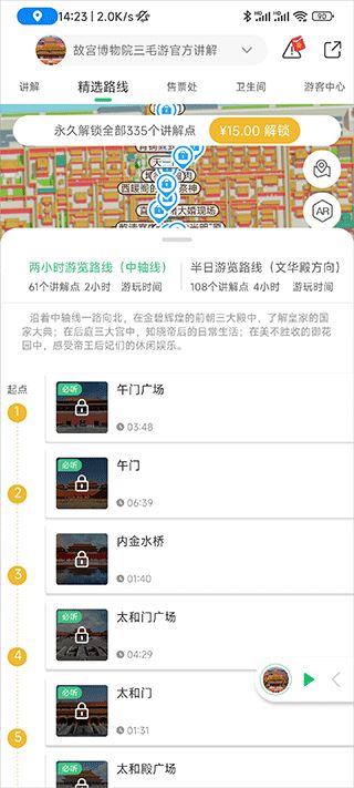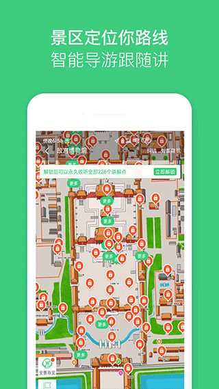 北京故宫博物院讲解app,这是一款专门为北京故宫旅游的小伙伴而打造的智能导游app,内含北京故宫博物院226个知识点及北京全部150个景区的自动定位真人语音讲解。软件采用的是专利微定位纠偏自动触发讲解,通过自主专利GPS+微定位景区导览技术,实现了游览景点时候走到哪里听到哪里,做你的贴心导游小助手。除此之外,故宫博物院讲解支持AI智能识别博物馆展品,只要将手机对着展品即可快速识别,自动讲解,让您的博物馆之旅不再懵比。北京故宫博物院讲解软件整合了必备便捷工具,如天气、翻译、汇率查询,让你不用重复下载多个旅行工具,有需要的朋友快来下载吧。