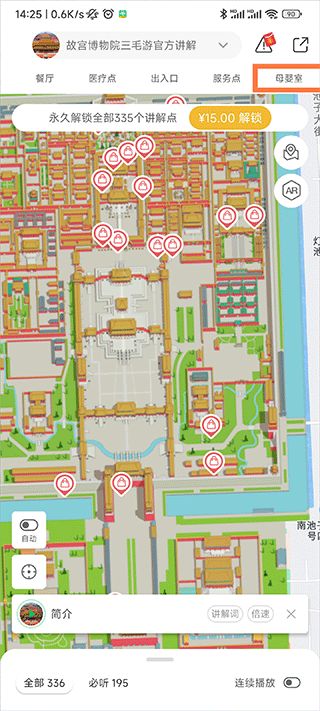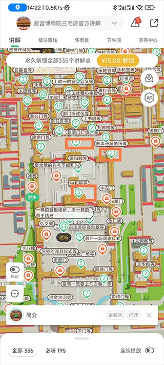 1、下载并打开软件,首页讲解,点击地图上的序号点,即可听景点讲解