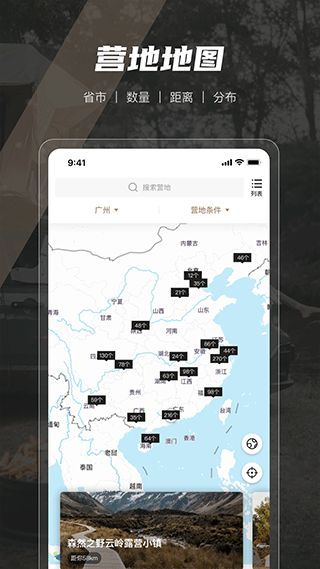 全方位露营地测评,覆盖水电洗漱、厨房炊具、天气预报、导航信息