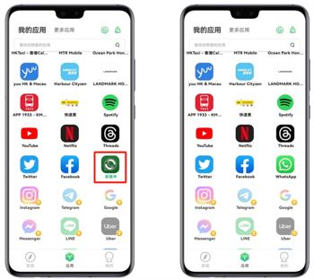 在大陆以外的地区和国家,手机接入当地网络后,即可使用当地应用。
