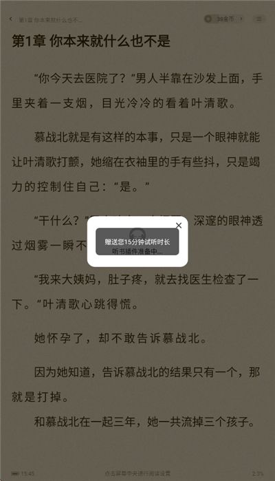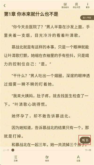 3、app上所有小说点击即可免费阅读,还提供听书模式