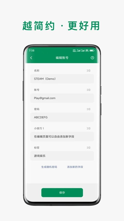 3、【内容自定义】除了名称,账号,密码,你还可以添加更多内容项