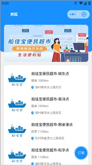 1、在船佳宝app首页点击商超