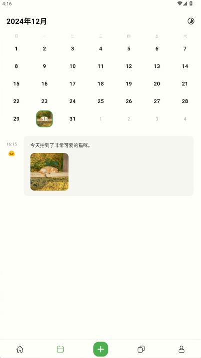 4、日历页面也可以看到添加过的日记。