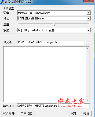 文语转换小精灵是一款语音转换软件,软件可以将你导入的文本转换成mp3音频文件,目前支持中文英文、男女声音频转换...