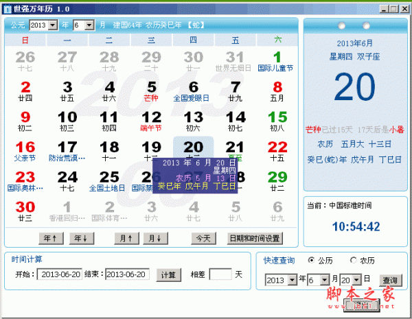 世强万年历一款非常实用的多功能日历,日期计算等均采用了现代高精度天文算法...