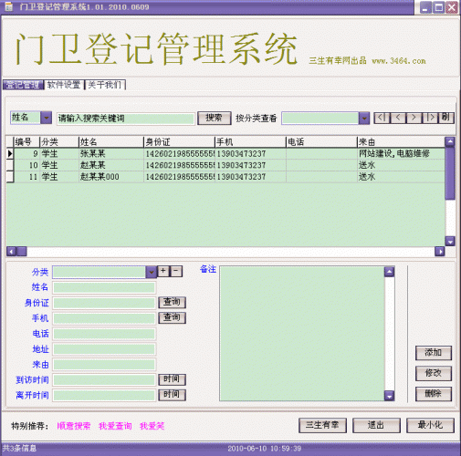 绝对简单实用的综合登记管理软件 门卫登记管理系统V1.01 绿色版