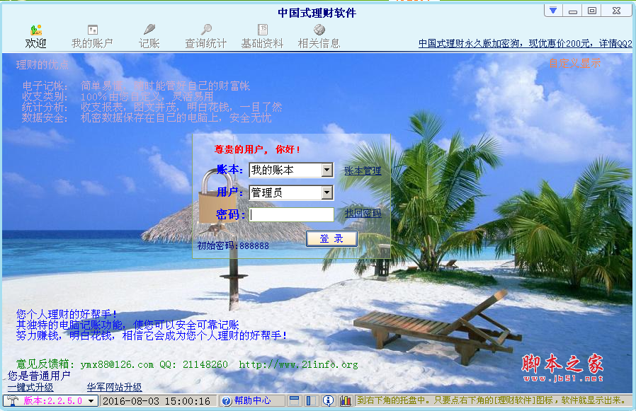 中国式理财软件 V2.2.5.0 绿色版 方便记录各种收入和开支