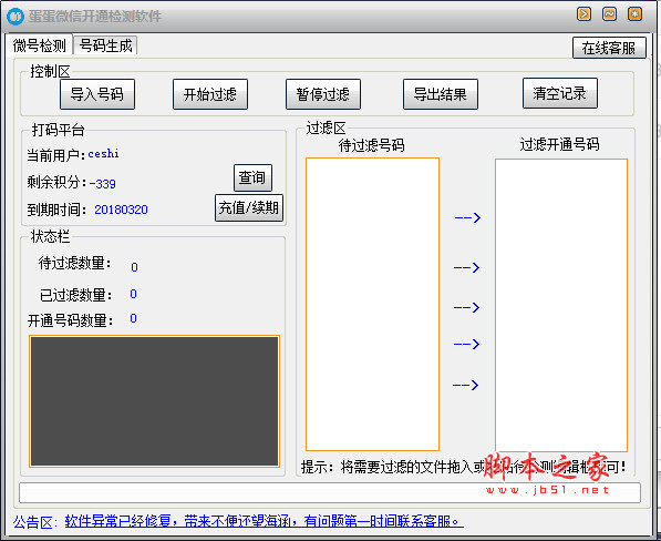 蛋蛋微信开通检测软件是一款操作简单、功能强大的微信开通状态检测软件,蛋蛋微信开通检测软件可以免费的帮助用户批量查询各类手机号、QQ号、邮箱号是否开通微信,非常实用,需要的朋友欢迎前来下载体验...