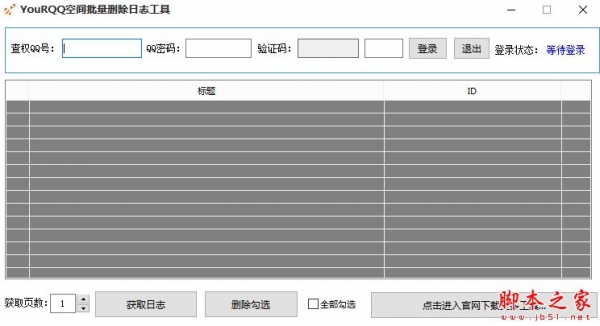 YouRQQ空间批量删除日志工具是一款用于批量删除QQ空间日志的辅助工具,成功后输入空间日志页数,然后点击获取日志,有此需要的朋友快来下载使用吧...