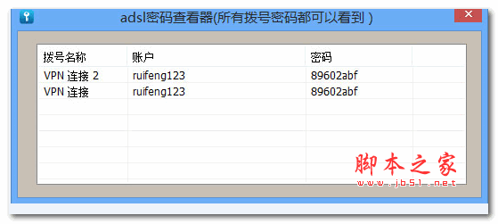 软军网络l密码查看器,是一款免费的查看您机器上Adsl,Vpn等拨号程序的密码的工具,打开就可以看到...