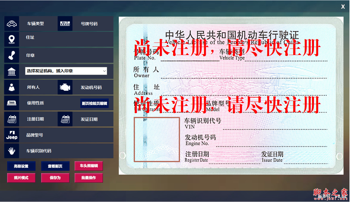 行驶证自编自导是2016年10月由自编自导网开发的,可自行编辑生成一比一的行驶证图片的软件,支持驾驶证自定义两页模拟,随机生成档案编码,条线码,支持照片自定义,支持各省市红印章自定义...