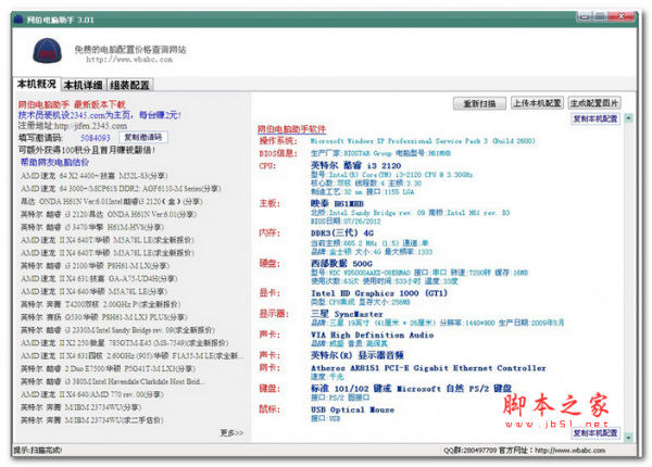 网伯电脑助手,能检测电脑硬件型号,参数。比如cpu的核心数/线程数/制造工艺/接口,主板的北桥南桥型号,内存的当前主频和通道,硬盘容量大小等等。让你对自已的电脑硬件一目了然,对某些配件还能给出二手估价...