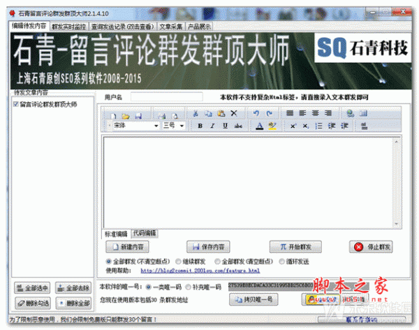 石青留言评论群发群顶大师 V2.3.1.10 绿色版