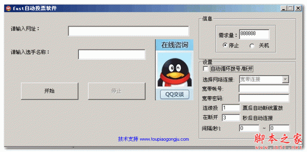 fast自动投票软件是一个能够自动投票的刷票软件,通过这个软件就能够自动地循环往复刷票,并且软件能够自动连接断开网络更换IP地址...