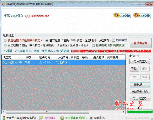 智力淘宝旺旺状态批量检测工具 v1.0 特别版
