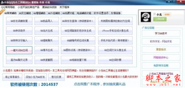 小龙QQ综合工具箱 2014 v7.2.1.0 暑期绿色版 空间说说秒赞/QQ骂人器等