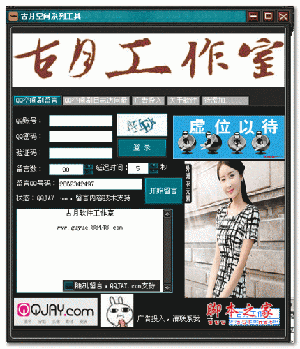 古月QQ空间系列工具是一款绿色免费的QQ空间多功能辅助工具。软件功能强大,可以便捷的刷日志访问和空间留言...