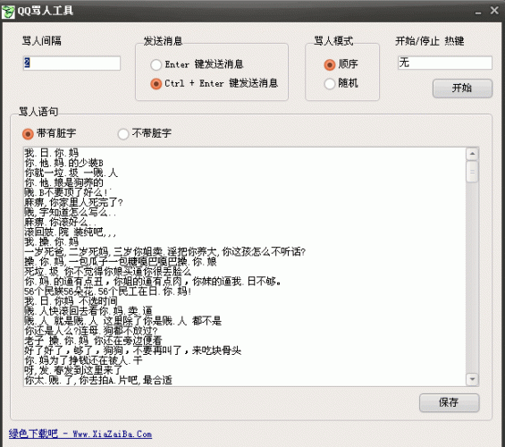 QQ骂人工具支持qq2014最新版本,是一款免费的骂人工具,而且分带脏字和不带脏字两种骂人模式,拥有最新骂人词语,是2014年最犀利的骂人神器...
