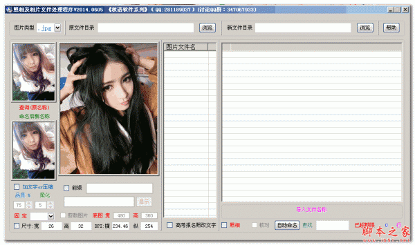 照片相片文件处理程序是一款好用便捷的照片文件批量处理工具。软件功能强大,支持图片文件批量更名,压缩剪裁,像素分辨率修改,是一款不错的图片处理软件...