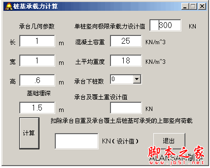 这款程序用于计算承台及覆土重设计值、扣除承台自重及承台覆土后桩基可承受的上部竖向荷载...