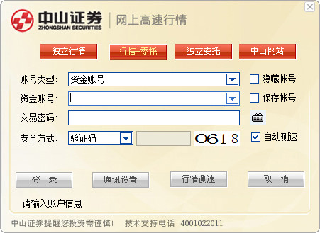 中山证券个股期权独立委托版是一款由中山证券推出的期权独立下单交易软件,该个股期权独立委托版本提供高速网络接入,支持电信及网通入口自动测速登陆,增加验证码认证登陆方式,方便您的登陆和使用...