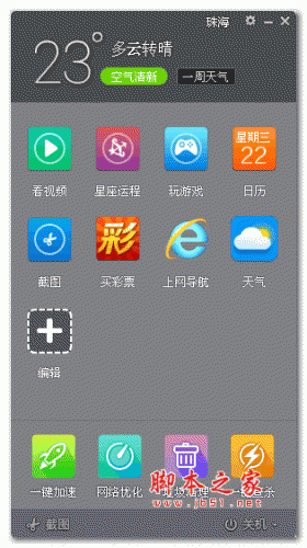 毒霸轻桌面是人从新毒霸中提取出来的一个桌面图标管理工具,它可以把桌面上的所有图标集中在一个小巧漂亮的界面中,让桌面上更整洁,并且方便调用...