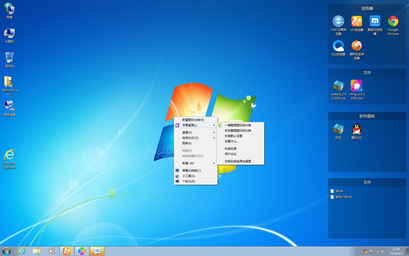 苹果桌面软件是一款仿苹果桌面的软件,苹果桌面可以一键整理桌面图标,让桌面瞬间变得井井有条。苹果桌面通过贴片整理对图标进行分类,极速启动,是你桌面管理最佳选择...