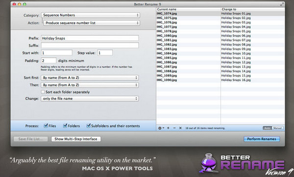 Better Rename for mac是Mac平台下一款可以批量文件重命名工具,仅需要简单的拖拽,设置文件的前缀名称和后缀的规则,就可以快速的批量重命名这些文件,非常的方便和易用,能够帮助我们节约大量的时间...